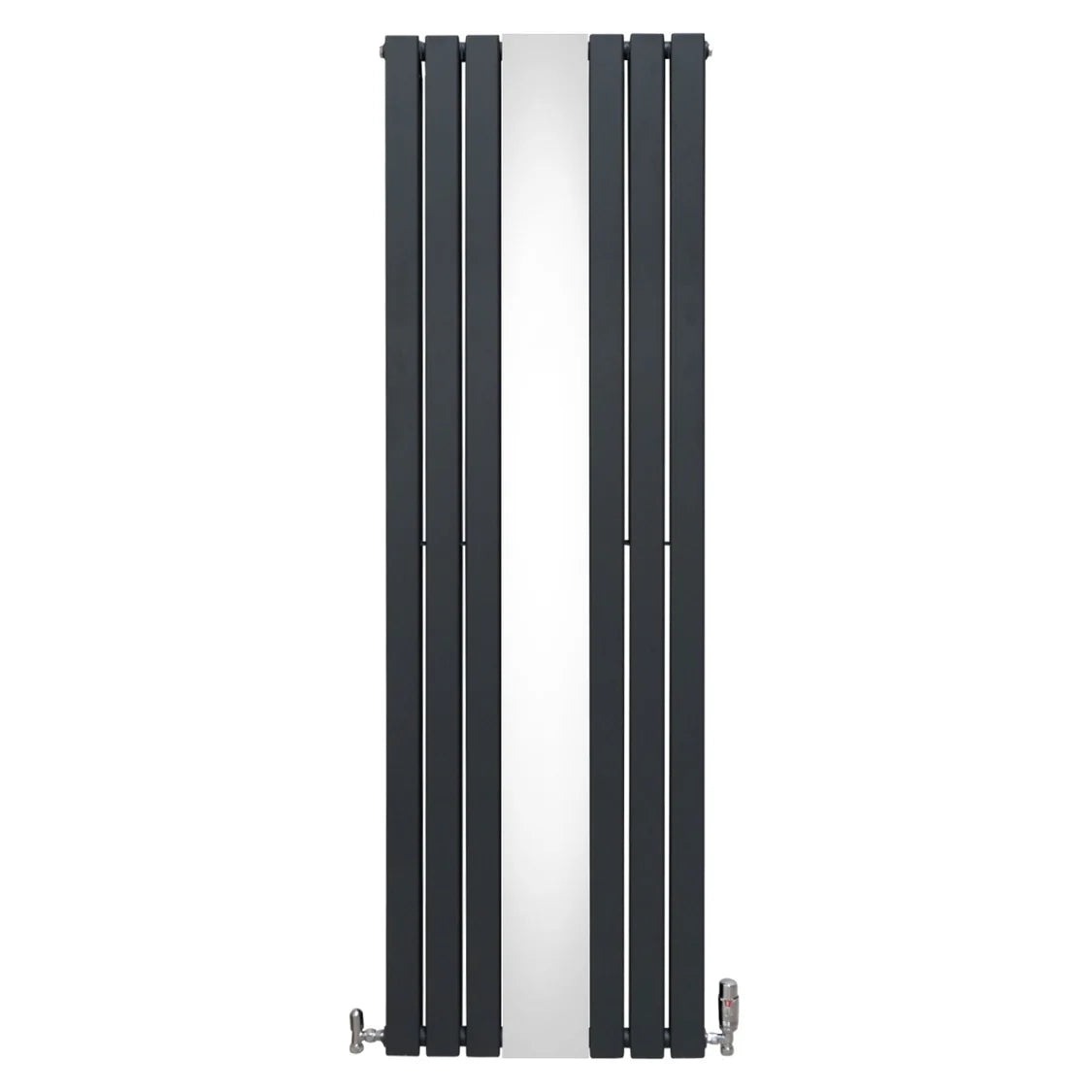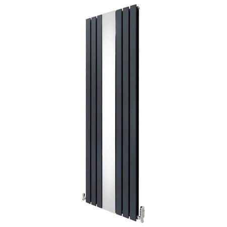 Luxury Anthracite Grey Flat Panel Vertical Radiator with Mirror & Thermostatic Valve Set