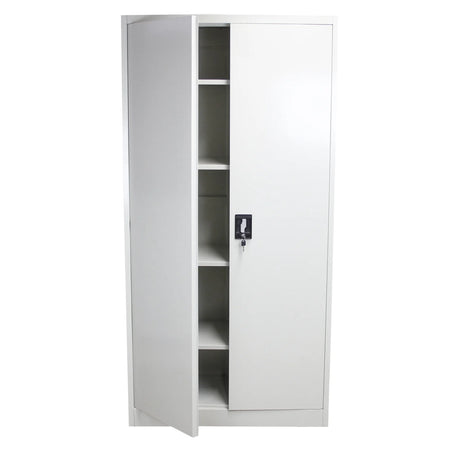 Keep your workspace tidy and secure with this durable powder-coated metal storage locker, designed for use in offices, warehouses, workshops, or home environments. Featuring two lockable doors and four adjustable shelves, it offers generous storage capacity for files, stationery, equipment, and essential supplies.
