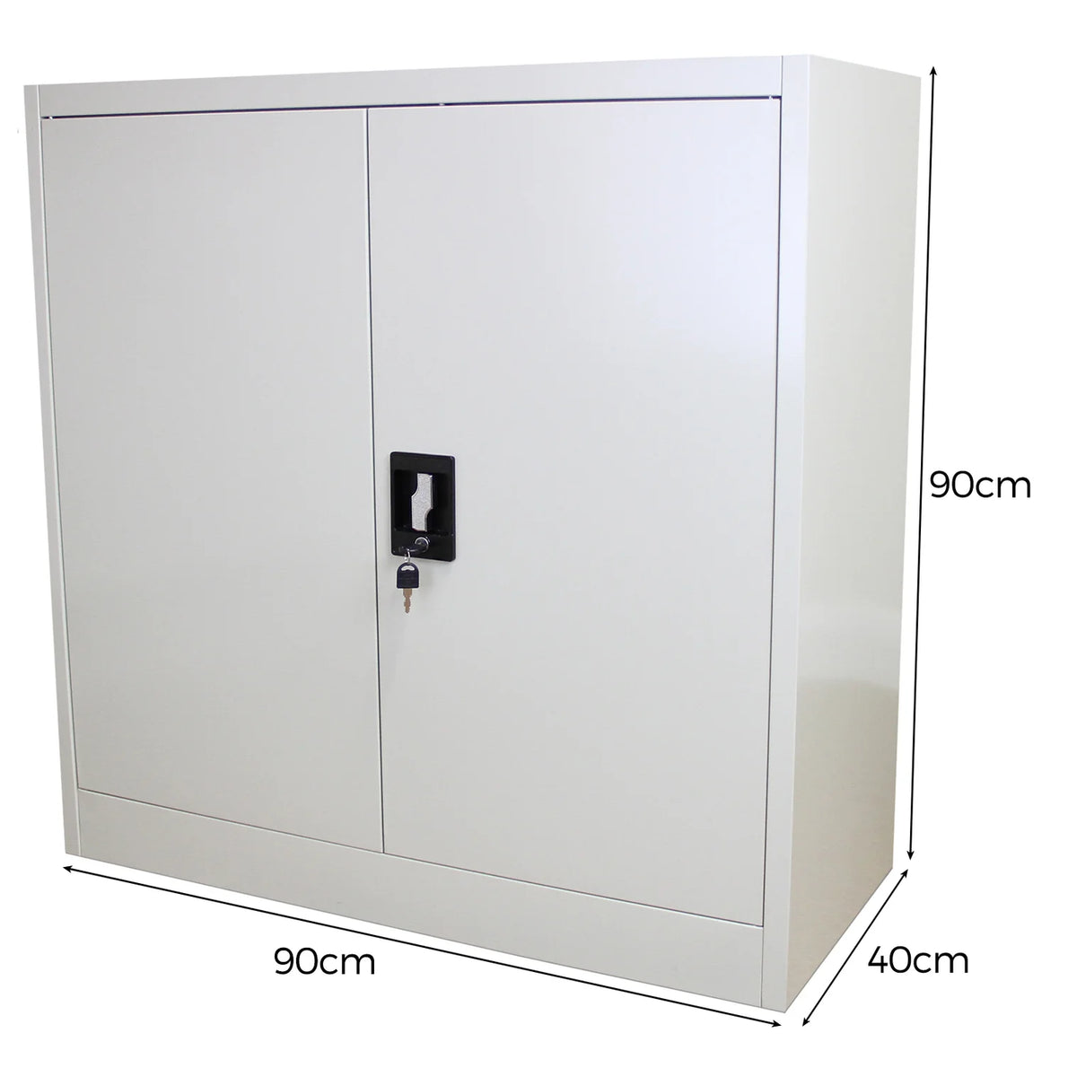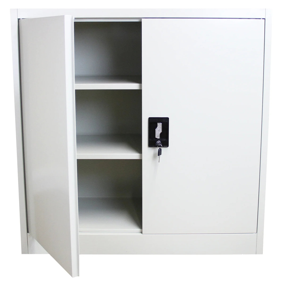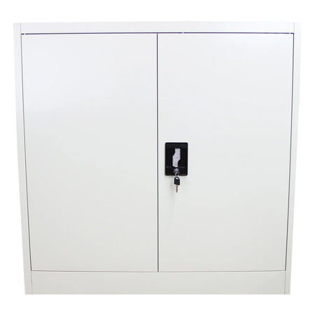 Keep your documents and office essentials neatly organised with this durable powder-coated metal storage cabinet, designed for both professional and home environments. Featuring two lockable doors and two adjustable shelves, it provides secure and flexible storage for files, paperwork, stationery, and more.